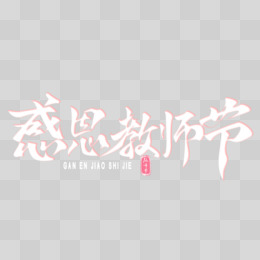 感恩教师节粉白色手写字