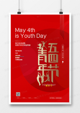 红色简约无奋斗不青春五四青年节宣传海报