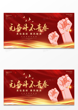 红色无奋斗不青春为梦想奋斗励志拼搏展板设计