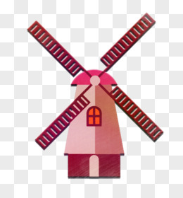 手绘卡通风车建筑免抠元素