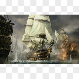 风帆战船海战插画