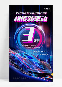 赛博朋克风机能新擎动倒计时手机宣传海报设计