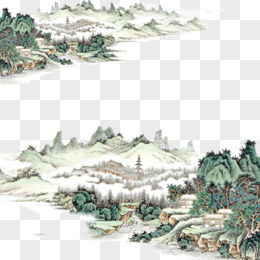 彩绘中国山水画风景