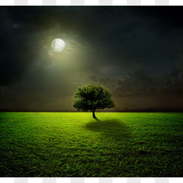 草原树木月亮风景