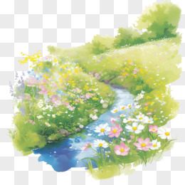 插画春天百花绽放风景免抠元素