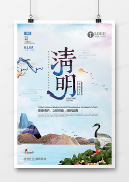 中国风冷色调清明节海报