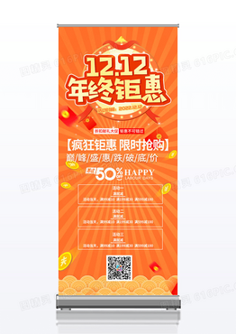 橙色促销炫彩双十二双12疯了促销活动展架易拉宝双十二双12展架