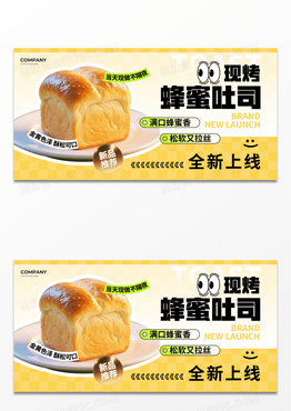 黄色简约现烤蜂蜜吐司面包展板宣传