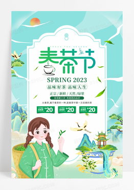国潮插画风春茶节宣传海报