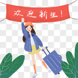 小清新手绘风女大学新生开学插画元素