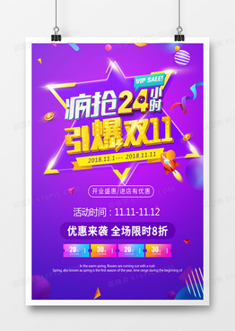 创意双十一疯抢24小时狂欢购海报宣传设计