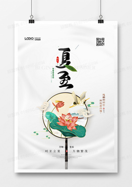 简洁中国风二十四节气夏至创意海报设计