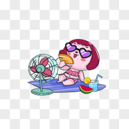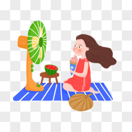 夏天吃冰激凌吹风扇的女孩元素