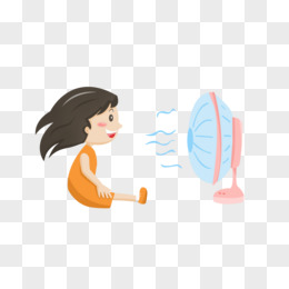 夏天手绘可爱的女孩吹风扇