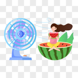 吃西瓜吹风扇的女孩创意元素