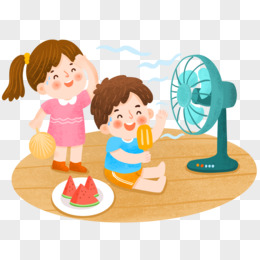 手绘卡通小朋友夏天吹电风扇插画免抠元素
