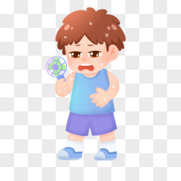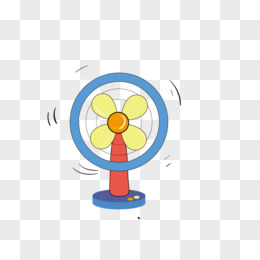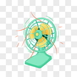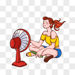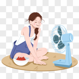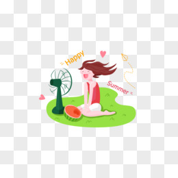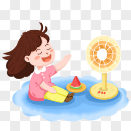 卡通手绘夏季女孩吹风扇吃冷饮场景元素