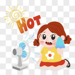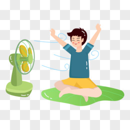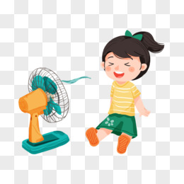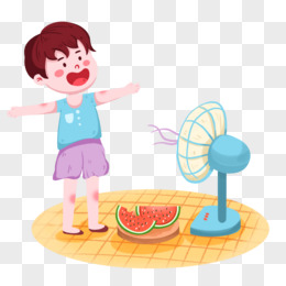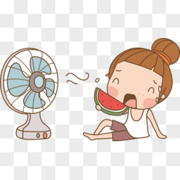 插画风夏天小女孩坐在沙发吃雪糕吹风扇免抠元素