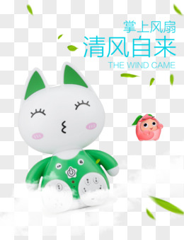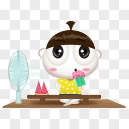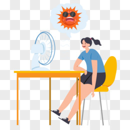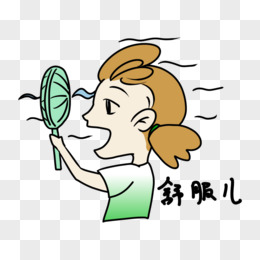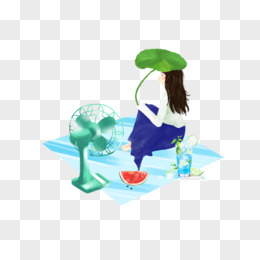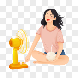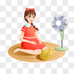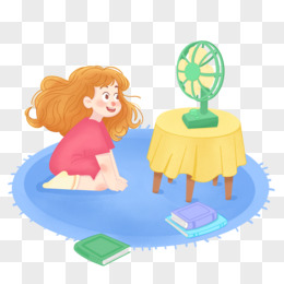 卡通手绘女孩夏日高温居家吹风扇免抠元素