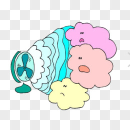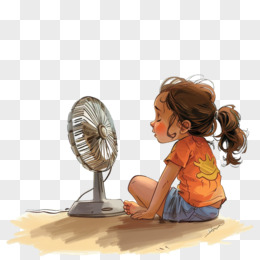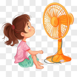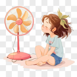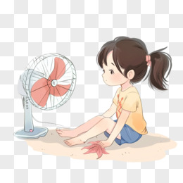 卡通插画风炎日降暑小朋友吹风扇免抠元素