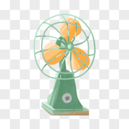 手绘插画风暑假小女孩边吹电扇边吃西瓜元素