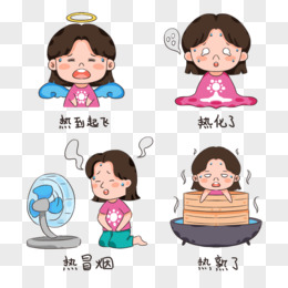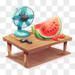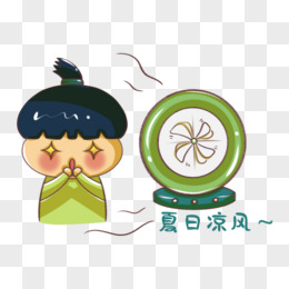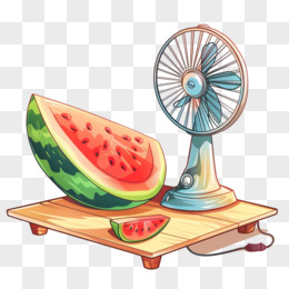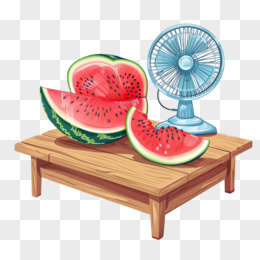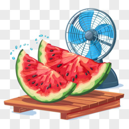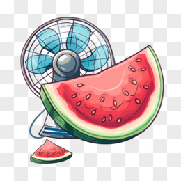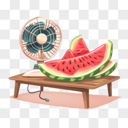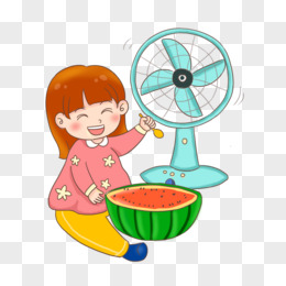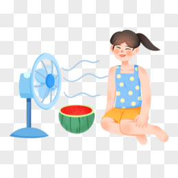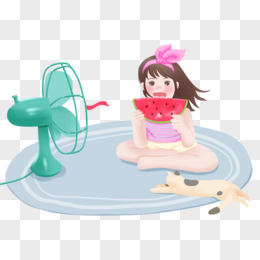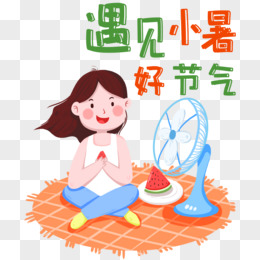 卡通小女孩吃西瓜吹风扇遇见小暑合成插画元素