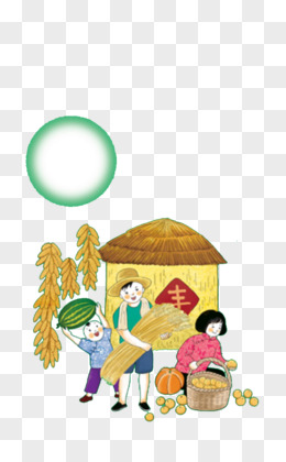 一组创意插画农民秋季丰收收获粮食人物合集元素