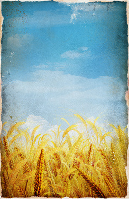 秋天丰收喜悦的农民抱着麦穗人物形象