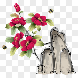 卡通元素中国风水墨画花卉元素