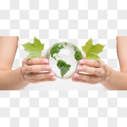 女性手捧绿植地球仪漂浮元素