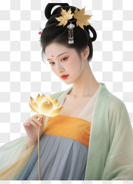 古风美女手持金莲卡通手绘元素