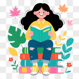 扁平插画长发女孩卡通手绘元素