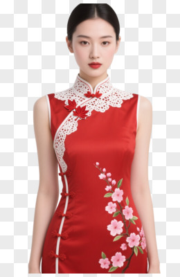红白旗袍樱花装饰图案