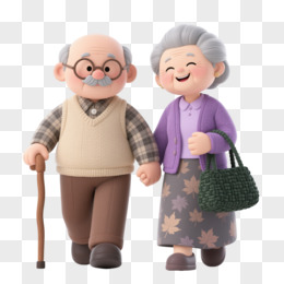 慈祥老年夫妇Q版卡通手绘元素