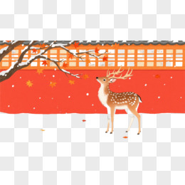棕白梅花鹿日式秋景插画元素