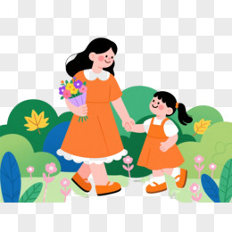 橙色母女扁平插画元素