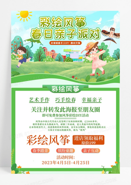 卡通亲子活动风筝节风筝DIY比赛活动海报