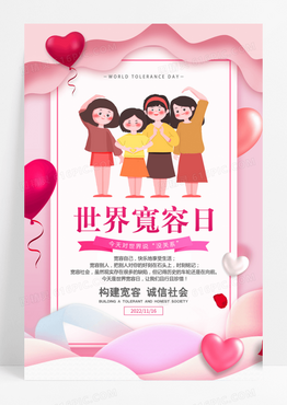 浅粉色爱心简洁大气世界宽容日国际宽容日海报设计