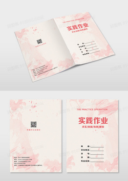 简约粉色笔刷背景实践作业教育培训画册封面