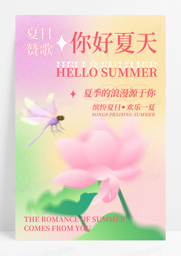 粉色清新轻拟物弥散风夏季荷花中国风海报