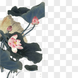 粉色水墨荷花荷叶