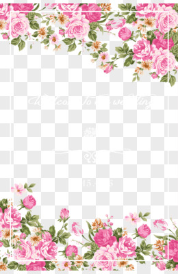 粉色蔷薇花卉金边植物手绘素材