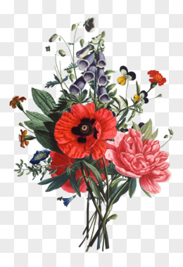 红色粉色一簇花手绘