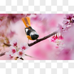鸟儿花朵粉色浪漫