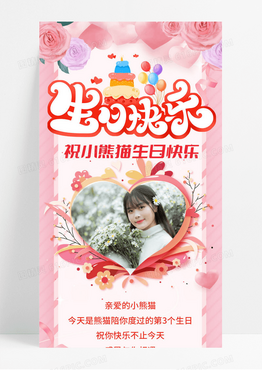 粉色卡通唯美生日快乐邀请函生日海报手机ui宣传海报