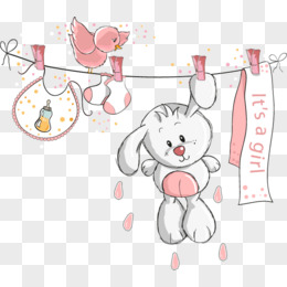 粉色可爱手绘卡通小清新复活节连衣裙小兔子免抠素材