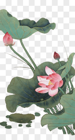 中国风手绘荷花荷叶元素