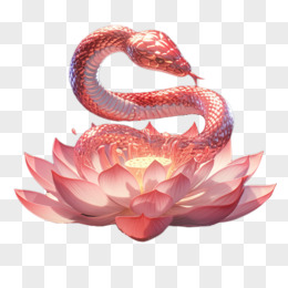 3D新年粉色蛇与莲花免抠元素