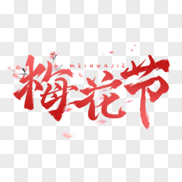 粉色梅花节毛笔字手写字设计