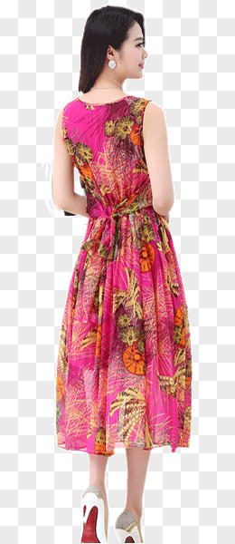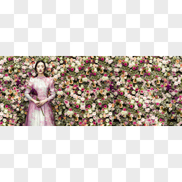 工笔淡彩画风宋代古风汉服美女粉色和白色牡丹闻花香免抠元素